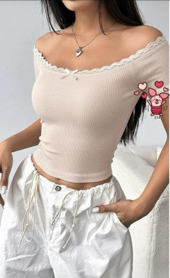 Básico Josefa en rib grueso, con un diseño femenino y delicado de hombros descubiertos que...